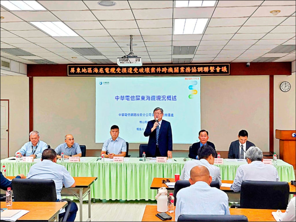 区域海底电缆安全响应平台于周一屏东跨部门会议后启动。图片来源:海洋委员会