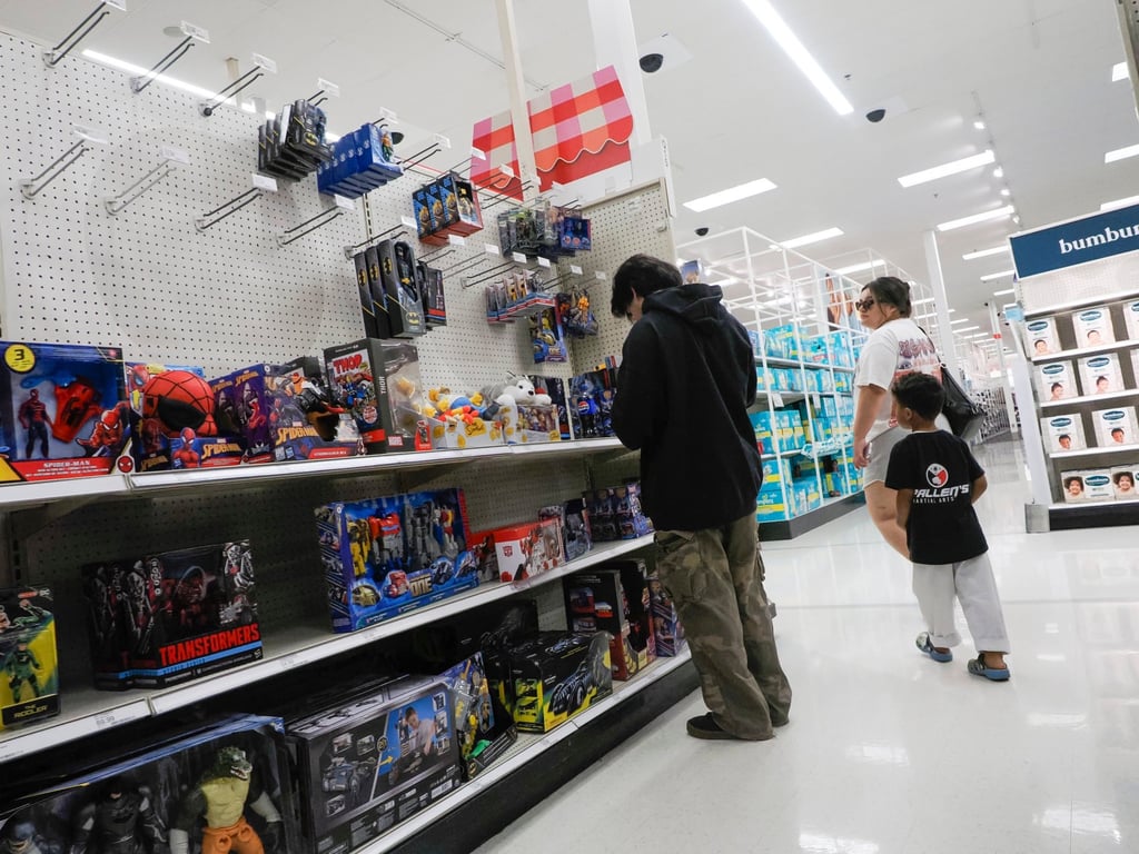 4月30日,顾客们在美国加利福尼亚州圣莱安德罗一家百货商店的货架间浏览商品。