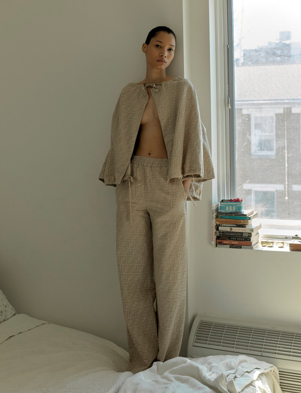 在炎热的月份里,芬迪的轮廓如同清新的微风般轻盈流动,让你轻松度过夏日。度假氛围浓厚,蓝色调让人联想到夏日的海洋与天空,精致的粉色珊瑚和贝壳设计等海滩细节更添风情。无论你是在度假还是在家放松,大胆醒目的印花宽松睡衣风套装都能以缤纷色彩宣告欢乐、欢乐、再欢乐。无论是漫步市场,还是傍晚池边小酌,都同样适宜。