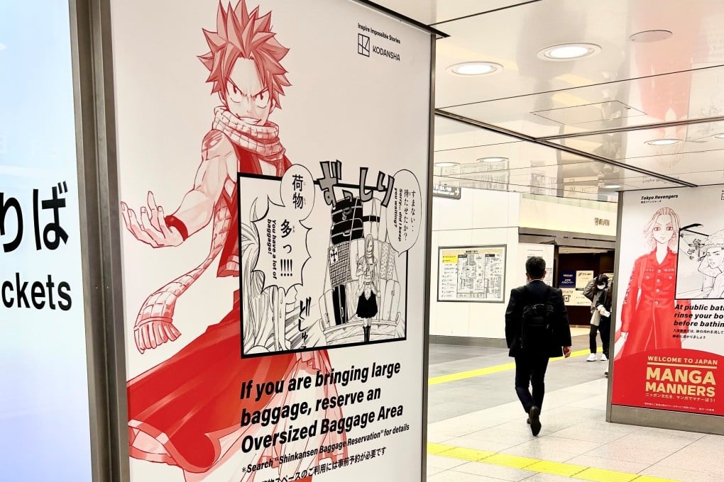 日本一家铁路公司针对外国游客发起礼仪宣传活动,借助该国最具全球辨识度的文化符号——漫画角色——来应对日益增多的国际游客在列车上的不当行为引发的困扰。今年四月,日本东海旅客铁道公司与讲谈社合作,开始在东京至大阪的东海道新干线沿线车站展示17部热门漫画系列角色的海报。