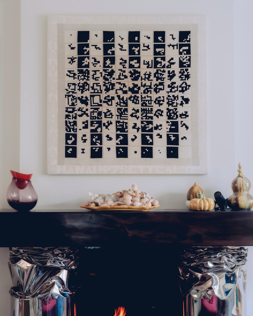 罗恩·阿拉德设计的壁炉上方悬挂着阿里吉耶罗·波提1977-1978年作品《交替1至100》。摄影:杰克·奥顿