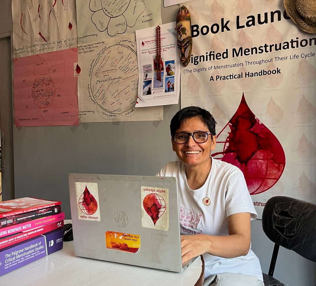 有尊严月经运动倡导者Radha Paudel在加德满都的办公室。照片:Bibek Bhandari