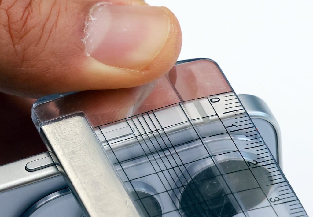 记者用尺子测量Galaxy S25 Edge的厚度。图片来源:EPA-EFE