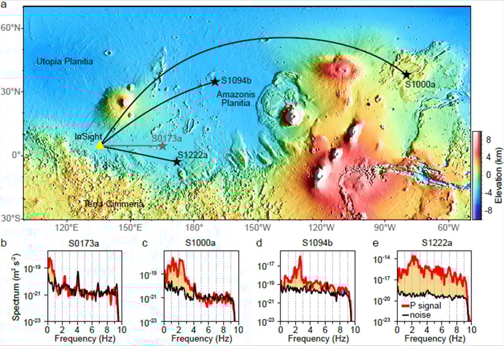 利用美国宇航局已退役的“洞察号”着陆器数据,一个由中国主导的国际研究团队分析了2018至2022年间记录的“火星震”与陨石撞击产生的地震波。他们发现火星地壳中存在一个神秘区域,认为最合理的解释是这里存在含水饱和的岩层。