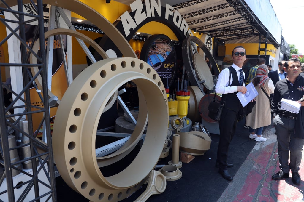 周五,人们在德黑兰国际展览中心参加第29届伊朗国际石油、天然气、炼油和石化展览会。照片:EPA-EFE