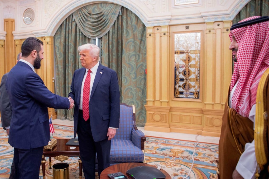 美国总统唐纳德·特朗普周三在沙特阿拉伯与叙利亚总统会晤,在美国突然宣布将解除对伊斯兰主义领导政府的全部制裁后,敦促其与长期敌对的以色列关系正常化。特朗普在美湾阿拉伯国家峰会前与叙利亚的艾哈迈德·沙雷会面。沙特国家电视台发布的照片显示,他们在沙特王储穆罕默德·本·萨勒曼(亦称MBS)的见证下握手。据土耳其阿纳多卢通讯社报道,土耳其总统埃尔多安通过视频方式参与了特朗普与MBS的会晤。