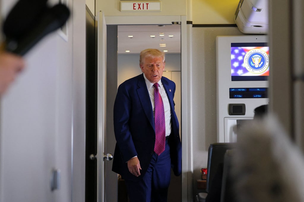 周四,美国总统唐纳德·特朗普在前往阿布扎比的空军一号上接受记者采访。图片来源:路透社