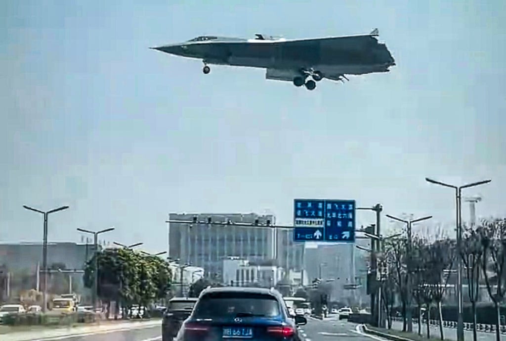中国首款第六代隐形战斗机J-36试飞。图片:微博