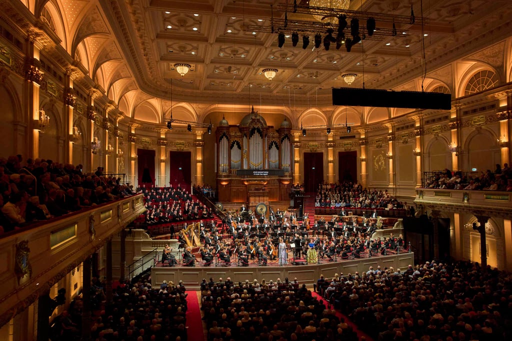 伊万·费舍尔正指挥布达佩斯节日乐团与荷兰广播合唱团,在阿姆斯特丹音乐厅演绎马勒《第二交响曲》。图:美联社
