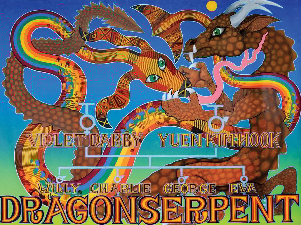 戈登·胡基的作品《龙蛇》(2024)融合了中国龙与原住民彩虹蛇意象,该作品正在澳大利亚国家博物馆"我们的故事:澳洲华裔原住民"展览中展出。图片来源:戈登·胡基