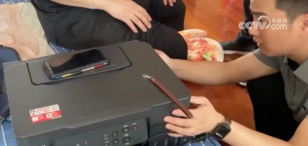 警方突袭这对夫妇住所时查获了打印机、裁纸刀和墨水。图片来源:中央电视台