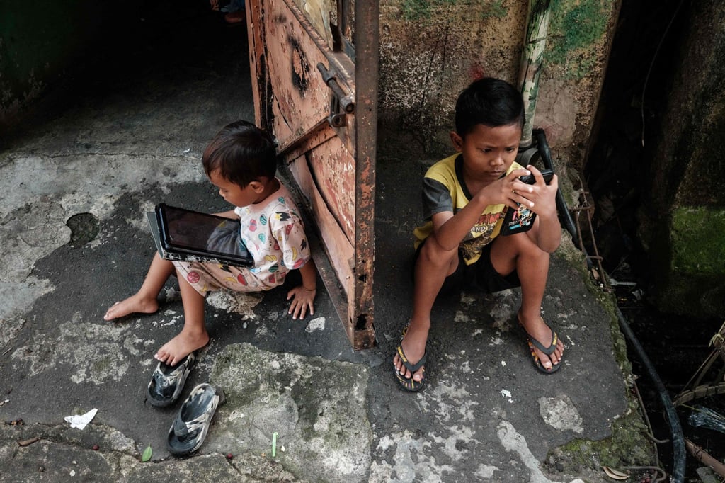 雅加达的孩子们在本月初使用数字设备浏览互联网。照片:法新社