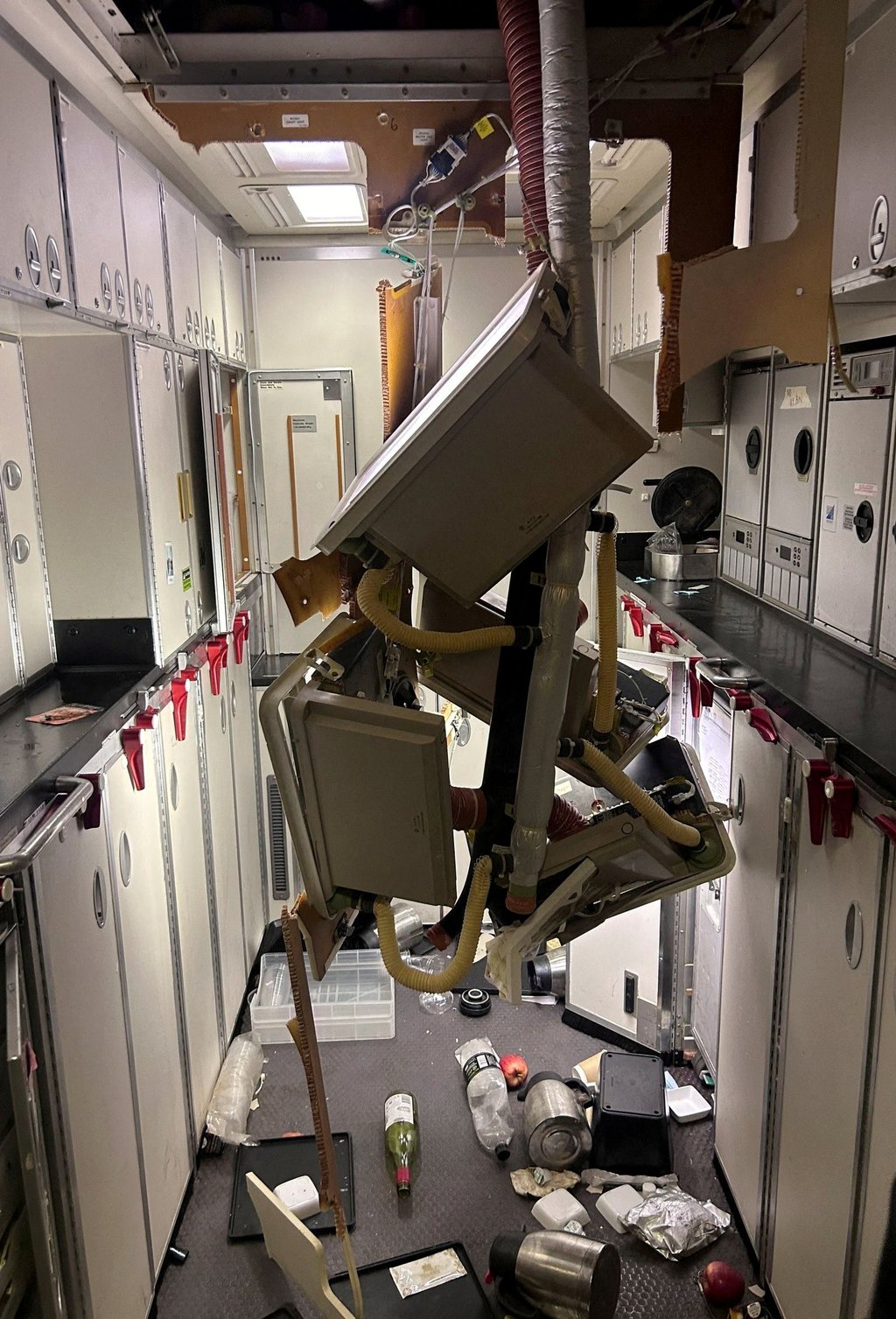 去年5月21日SQ321航班紧急降落在曼谷素万那普国际机场后的机舱内部。照片:路透社