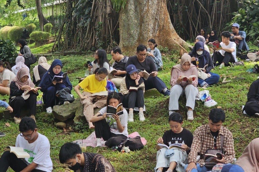 四月的某个周六清晨,读者们聚集在印度尼西亚首都雅加达的一个公园参加月度读书会。约260名陌生人坐在草地上低头阅读,完全沉浸在书中的世界。