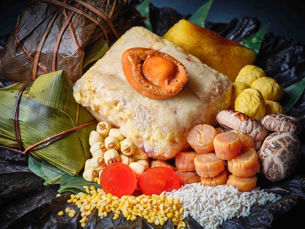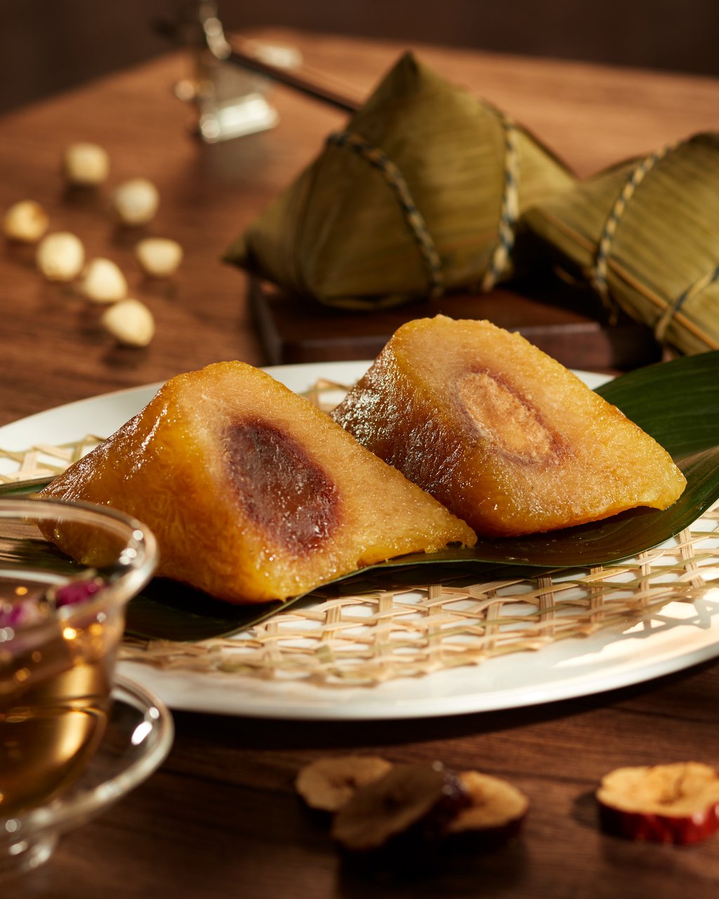 在香港最受欢迎的是广式粽子。“广式粽子以馅料丰富多样著称,注重口味的平衡,体现了粤菜的烹饪特色,”逸东轩中餐行政总厨李志伟说。典型的配料包括五花肉或鸭肉、干贝、香菇和咸蛋黄。今年,李师傅的粽子采用了多汁的猪肉、绿豆、鲍鱼、香菇、咸蛋黄、干贝、莲子、金华火腿和栗子的奢华组合,并用咸鸡酱调味。“广东温暖的气候适合种植各种作物,因此当地粽子的馅料种类繁多,”他解释道。