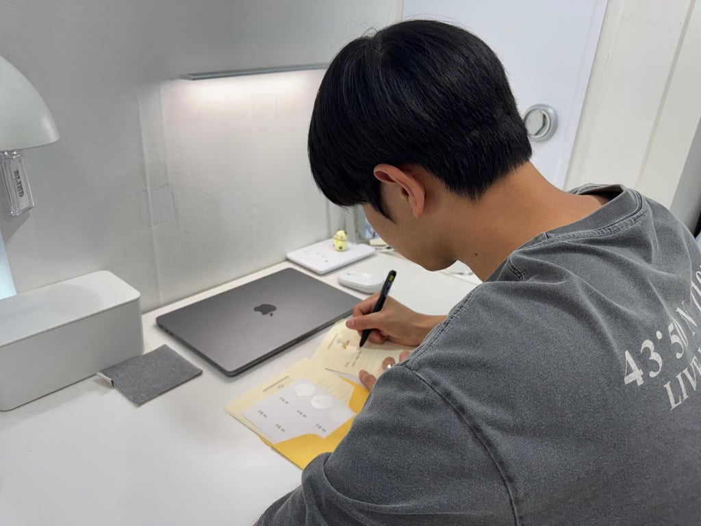 25岁的大学生郑胜元正在撰写对"温暖信箱"来信的回复。图:李承九