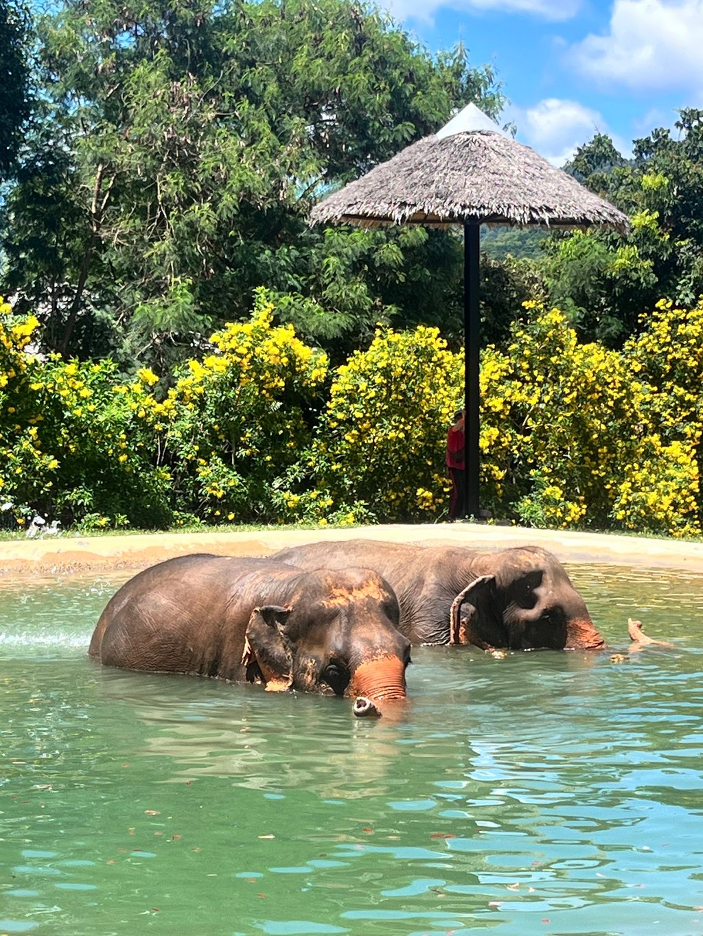 这个位于泰国南部旅游胜地苏梅岛波普镇葱郁丛林中的保护区,被九重葛、飞鸟与蝴蝶环绕,是七头亚洲雌象的家园。