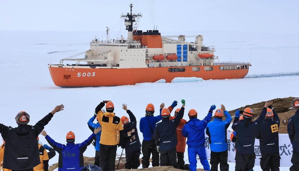 2023年12月,日本破冰船"白濑号"停泊在南极洲。图:共同社