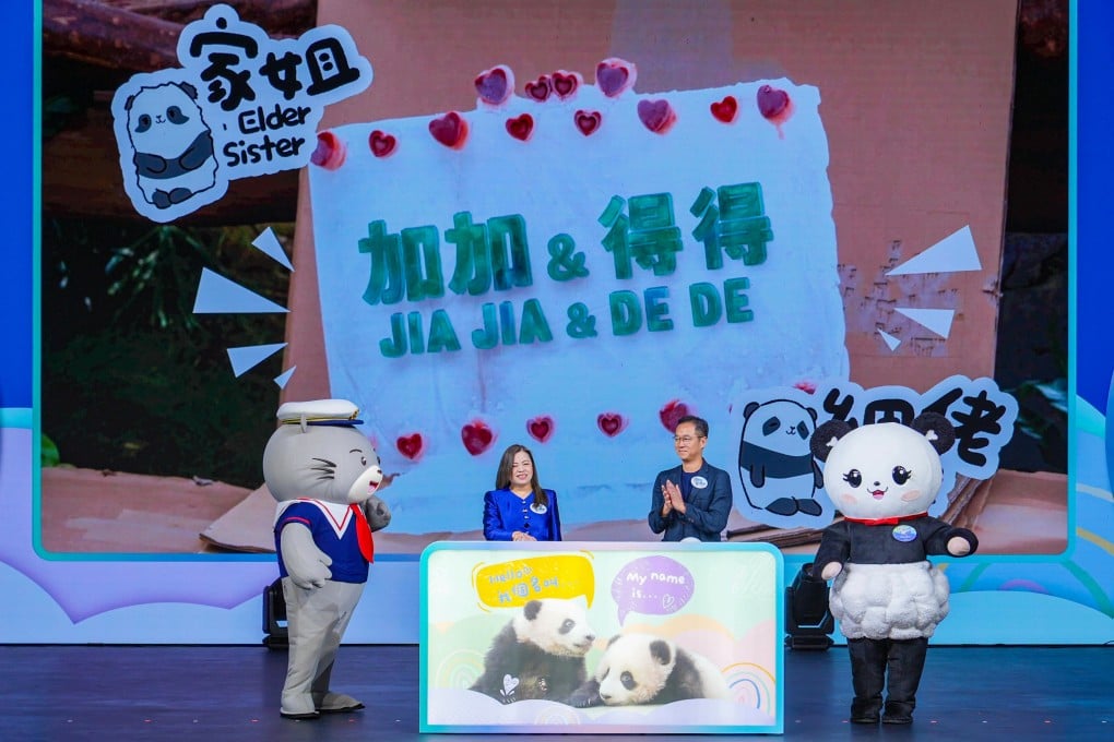 香港出生九个月的大熊猫双胞胎"姐姐"和"弟弟"正式命名为"佳佳"与"德德",这两个名字承载着中华文化中的美好品德。