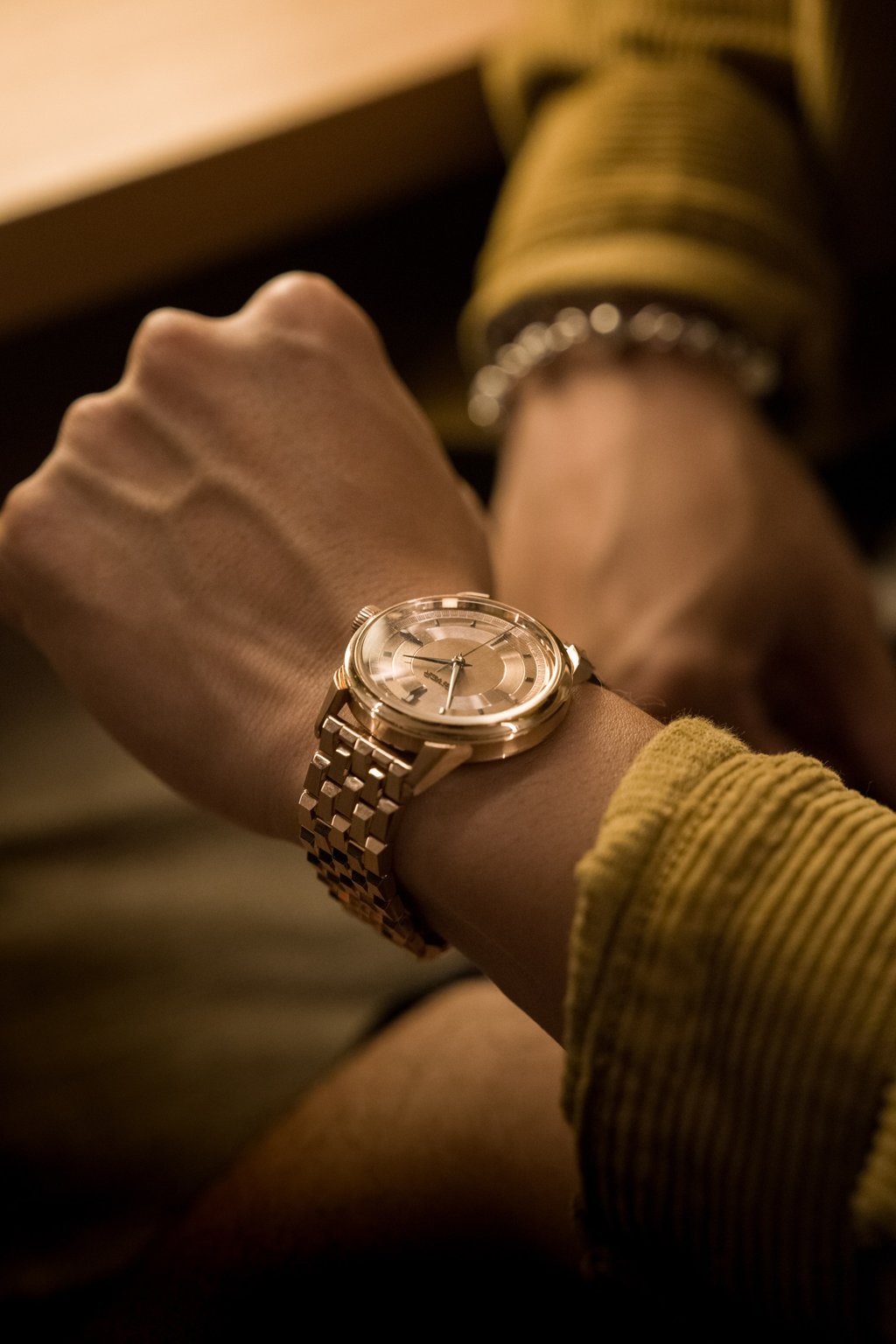 “我从他身上学会了敏捷和活力,“老比弗说,“而他则从我这里学会了三思而后行,不要过于急躁。这是一种很好的平衡。我还从他那里学到了一些审美观点。他是第一个让我缩小手表尺寸的人。我原本有些担心缩小尺寸,因为觉得[较小的]手表看起来有点女性化。但他说,‘不,现在人们会更倾向于想要小一些的手表。‘所以我们之间的这种交流非常有益。”