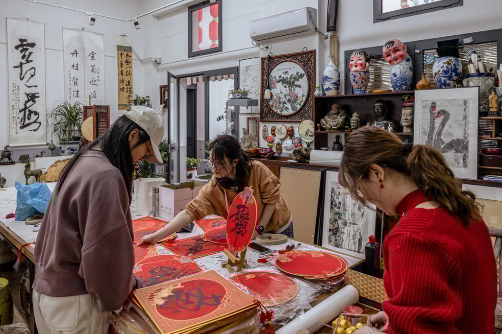 2024年2月农历新年前夕,保罗·萨皮街上的中意文化中心成员正在准备纸质装饰。摄影:盖蒂图片社