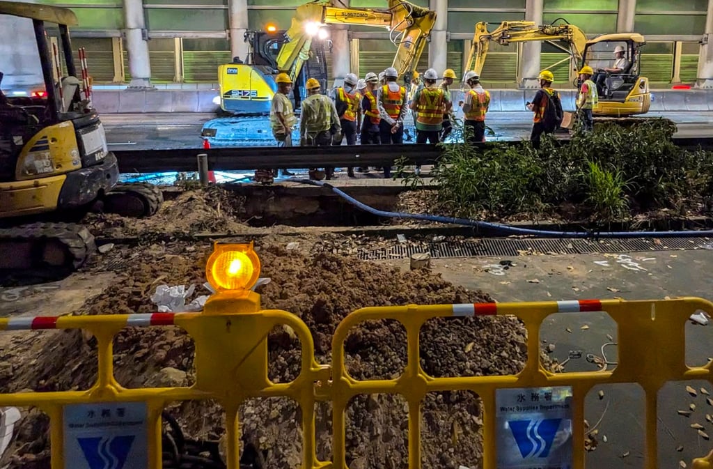 此次渗漏最早于周一晚间被发现。当局随后确定渗漏点位于屯门公路慢车道下方,并于周二实施道路封闭措施。