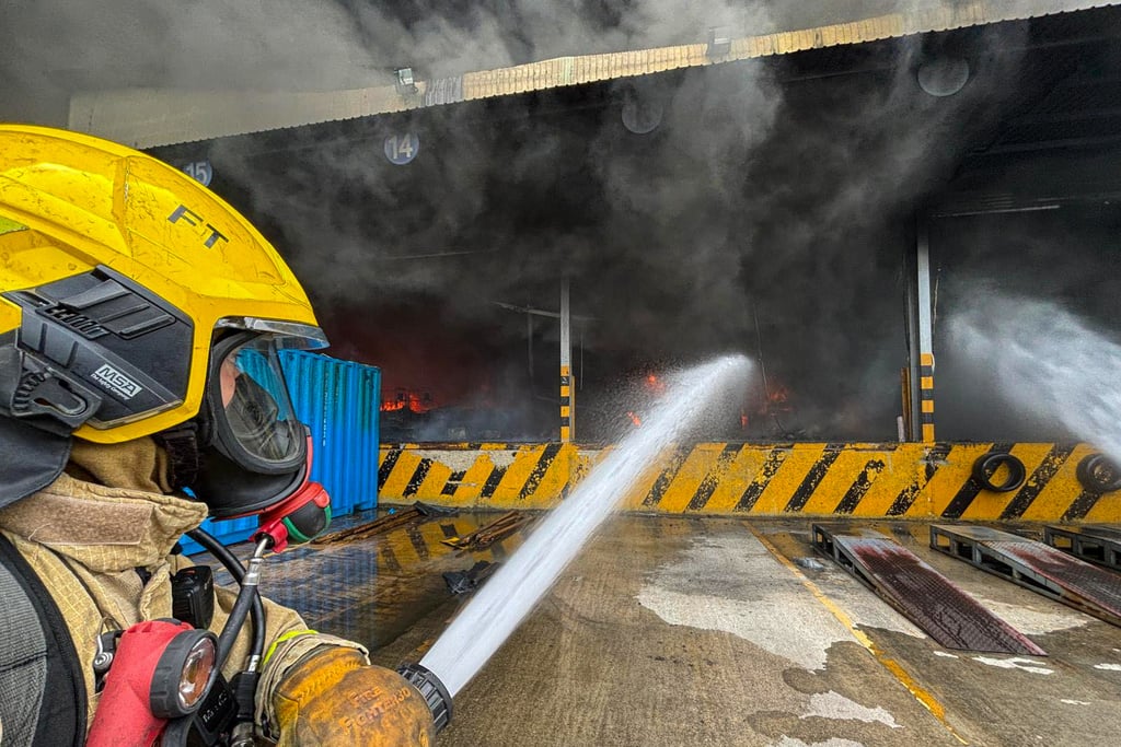 消防员奋力扑救香港仓库大火,火势已持续19小时 | 南华早报