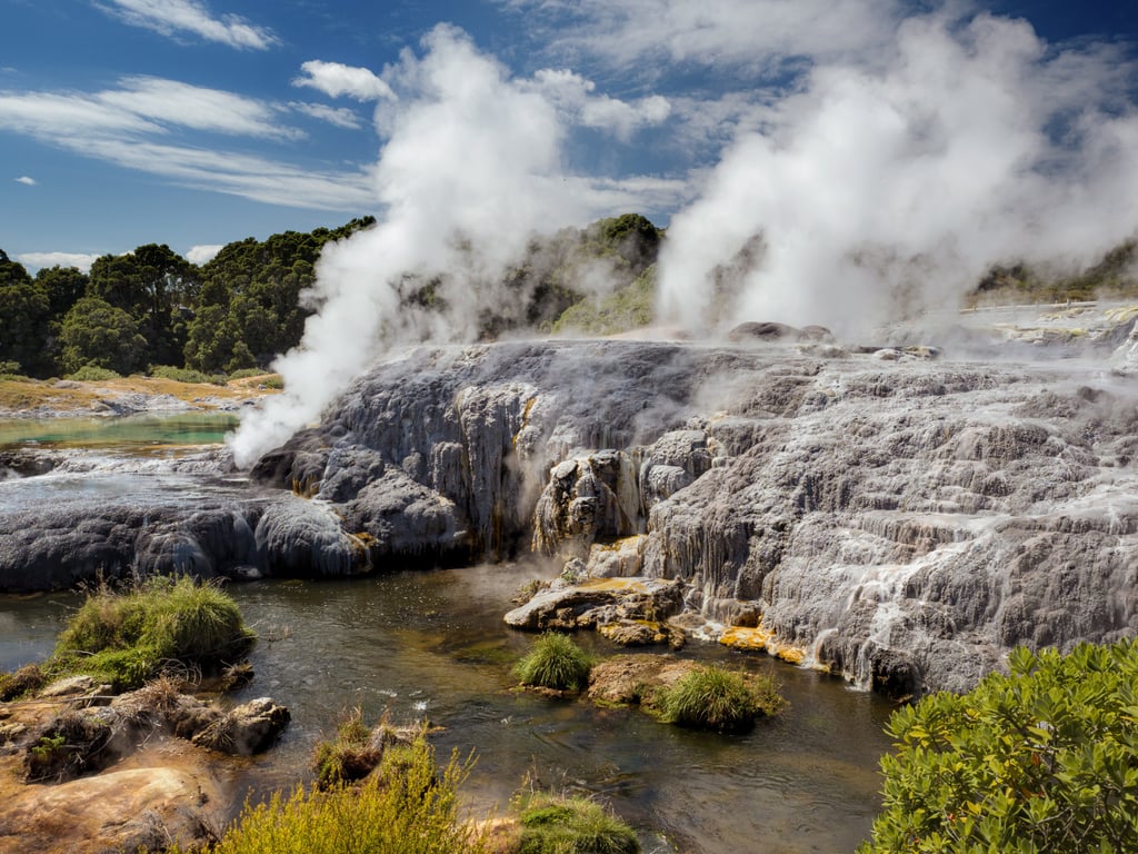 黄石国家公园以其喷涌的间歇泉、彩虹色的温泉和漫步的野牛群,成为许多人旅行清单上的必去之地。横跨美国三个州,坐落于一座蠢蠢欲动的超级火山之上,黄石公园是蒸汽升腾的河流和咕嘟冒泡的泥浆池的乐园。老忠实间歇泉是这里的明星,准时喷发,将滚烫的水柱射向天空。但如果你在等待美国旅游业的未来尘埃落定,那么位于新西兰的北岛,提供了一个硫磺味的替代品。