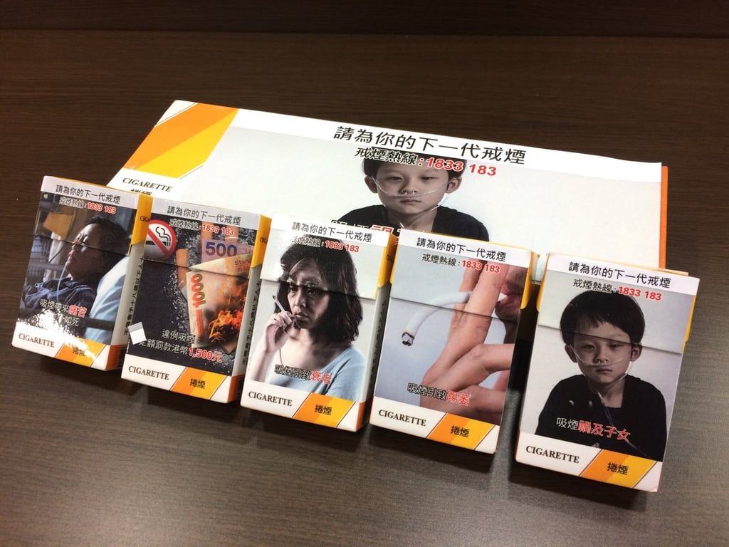 香烟包装上的健康警告。有人说这不足以阻止人们点燃香烟。照片:Elizabeth Cheung