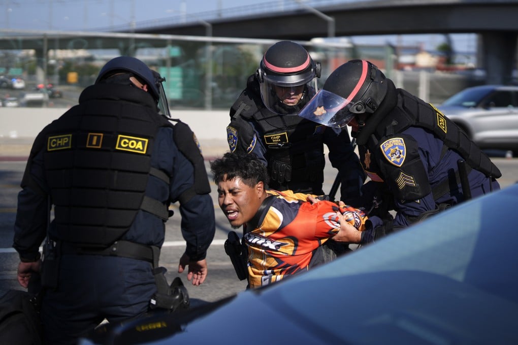这场基本和平的抗议源于对非法移民的突然大规模围捕。零星的暴力事件——包括焚烧自动驾驶出租车、向警察投掷石块——引发当局使用催泪瓦斯等防暴武器的大规模镇压。