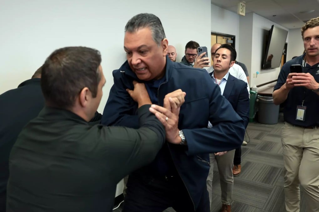 美国民主党参议员亚历克斯·帕迪利亚在周四国土安全部长克里斯蒂·诺姆的新闻发布会上试图提问时,被安保人员推出房间、按倒在地并戴上手铐。