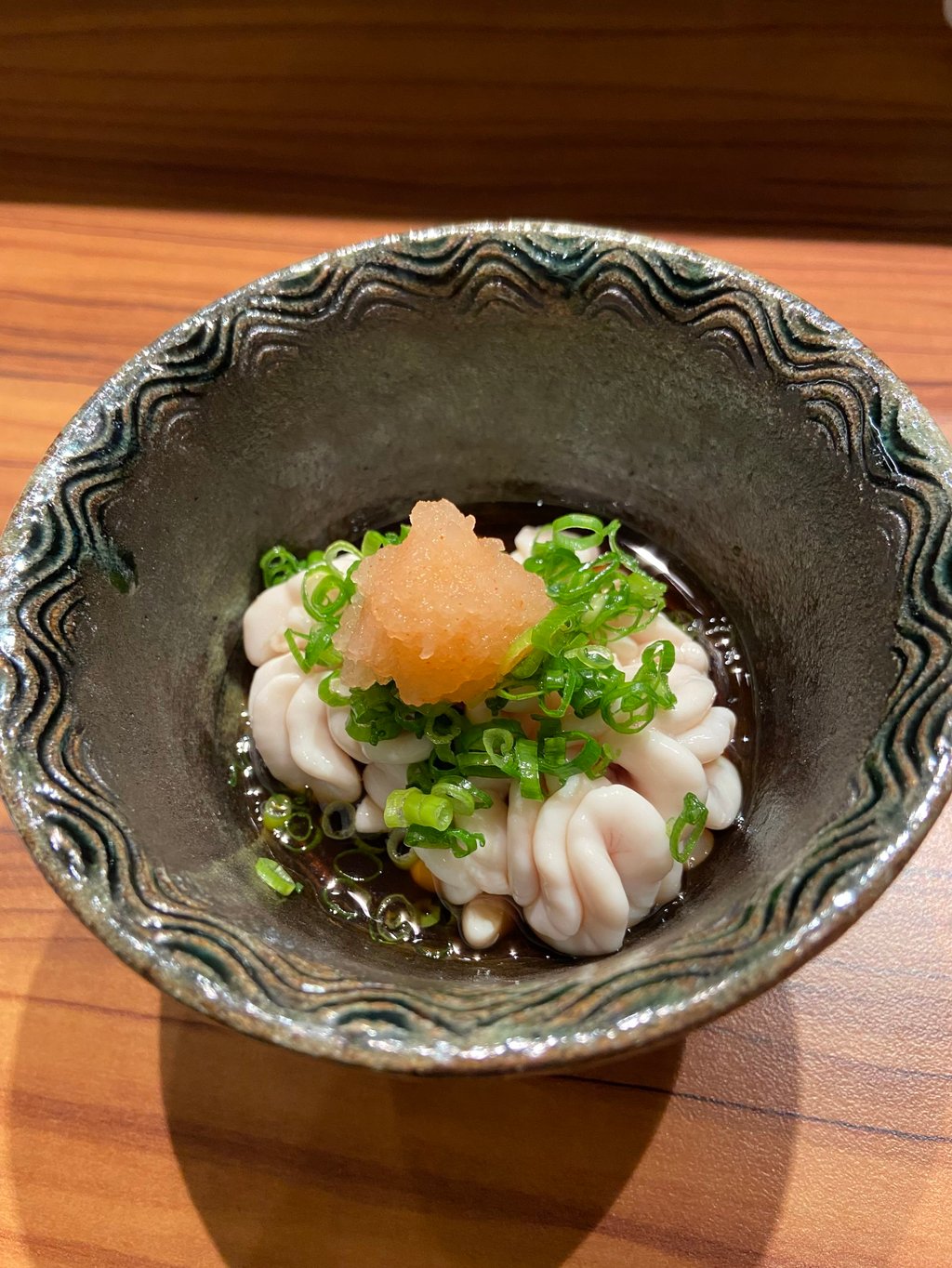 铜锣湾京都おでん雅的白子配柚子醋。摄影:苏珊·荣