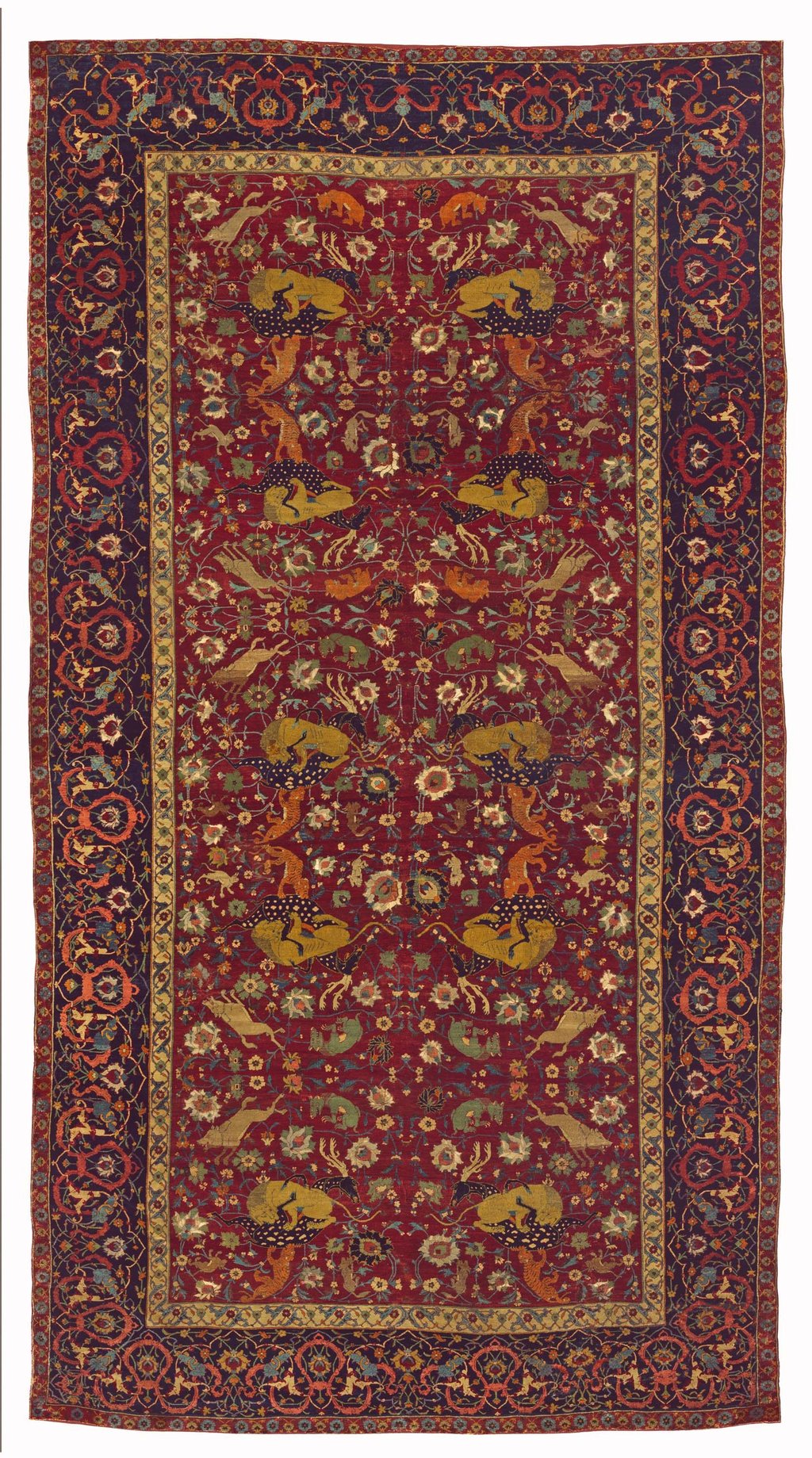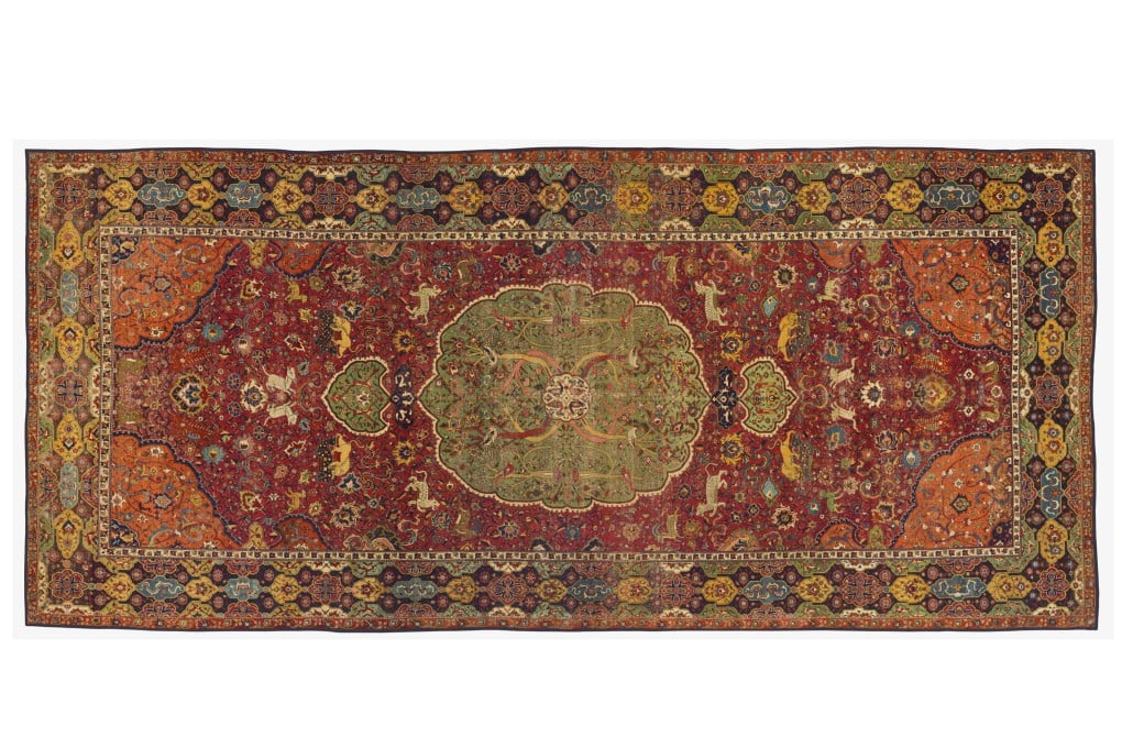 展览中还展出了沙·苏莱曼“狩猎”地毯,这是17世纪末萨法维王朝赠予威尼斯共和国领袖弗朗切斯科·莫罗西尼的礼物,以及凯沃尔基安海得拉巴地毯,其长度近16米,是全球博物馆馆藏中最长的伊斯兰地毯之一。