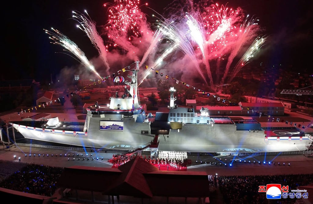 为纪念朝鲜驱逐舰“姜健”号下水举行纪念演出。照片:朝中社/朝鲜中央通讯社/法新社