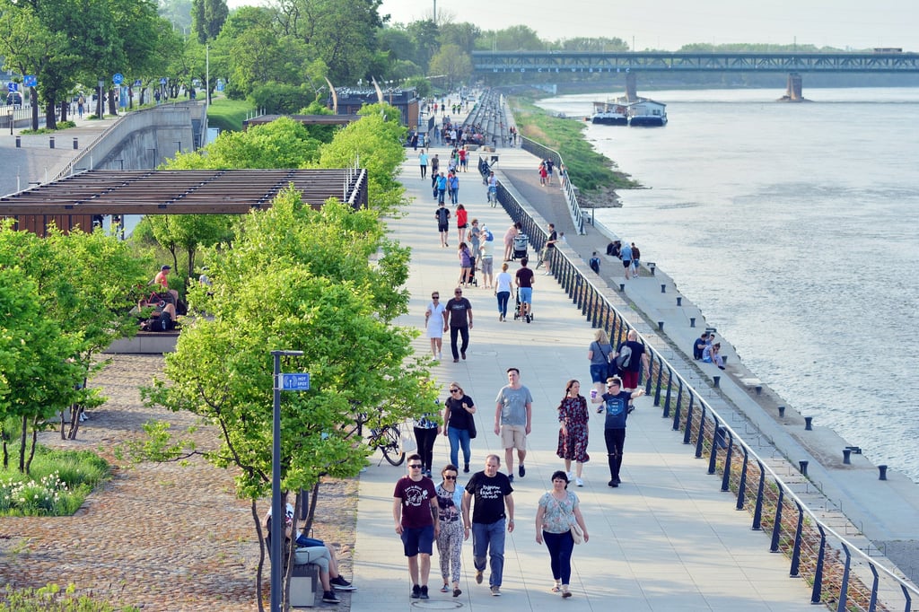 华沙维斯瓦河畔步道上的行人。图:Shutterstock