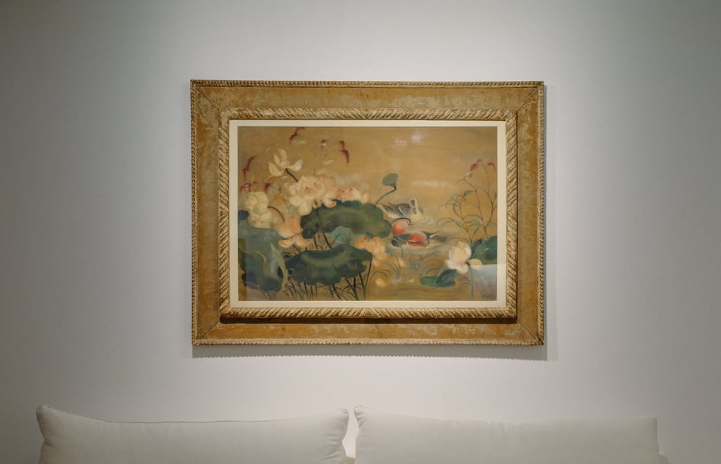 黎谱约1930年代末作品《鸳鸯与荷花》于香港维勒潘画廊展出。图:维勒潘