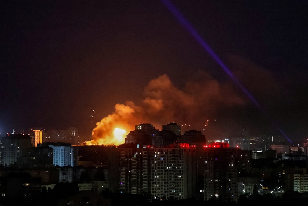 爆炸照亮了乌克兰基辅的夜空。照片:路透社