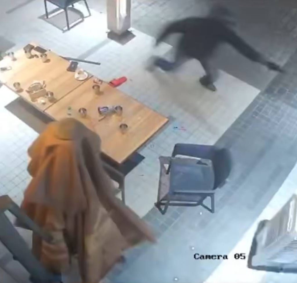 监控录像拍下一名戴头盔的枪手在十五碑一家餐厅追逐受害者的画面。照片:资料图片