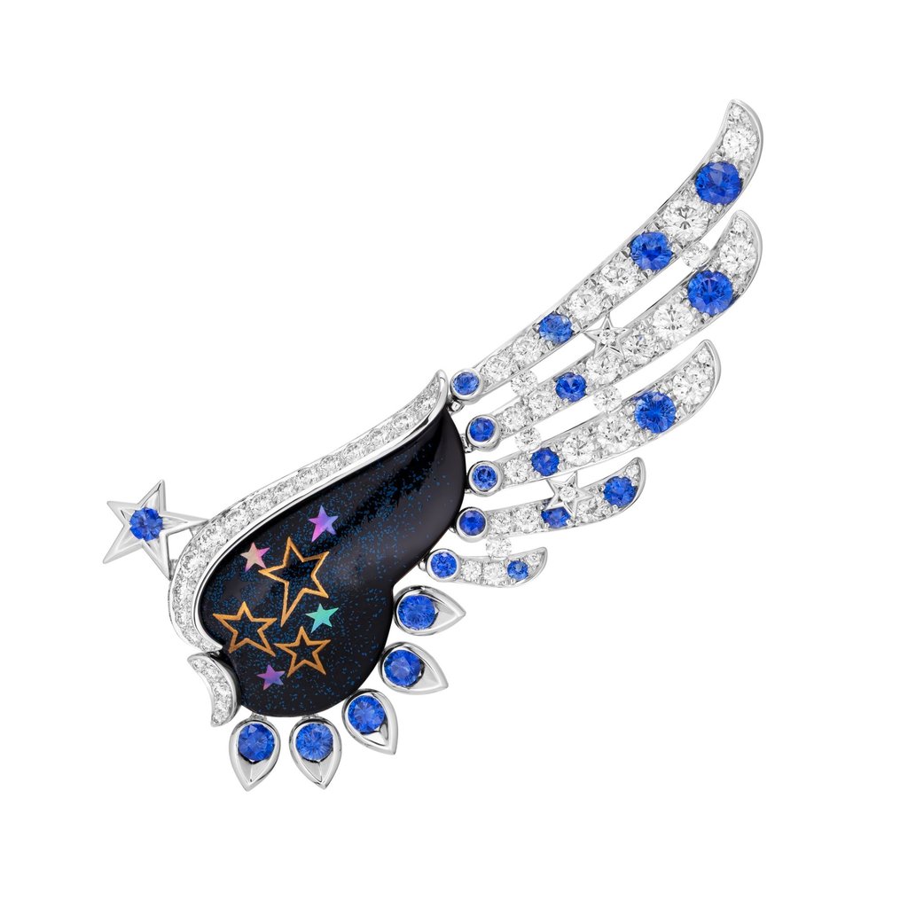 香奈儿"Reach for the Stars"系列五翼胸针,采用白金、蓝宝石及漆艺打造。图片来源:品牌提供