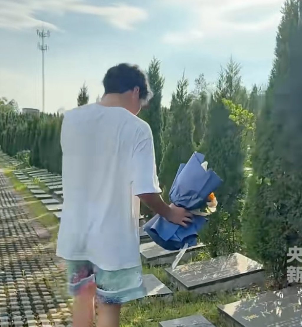 小陈准备为挚爱的亡母墓前摆放鲜花。图源:抖音