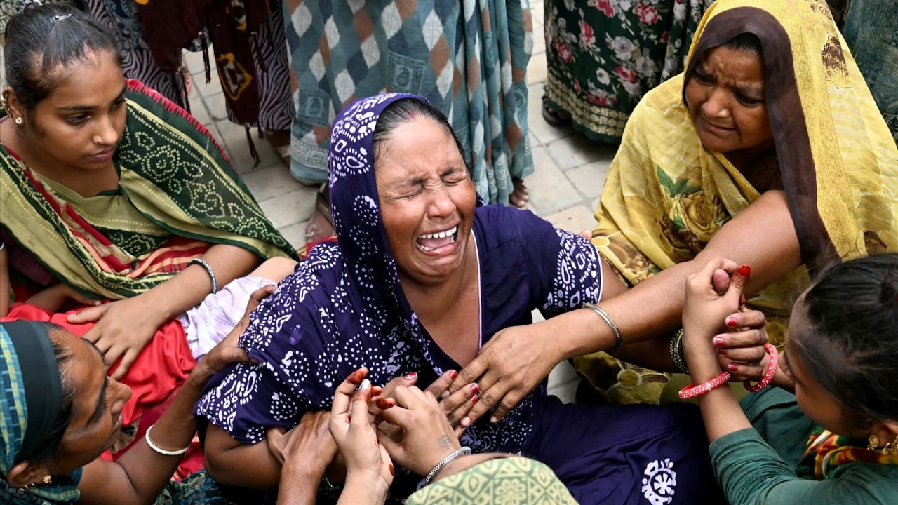 6月12日,救援人员在印度航空171航班坠毁的艾哈迈达巴德市居民区现场工作。图片来源:法新社