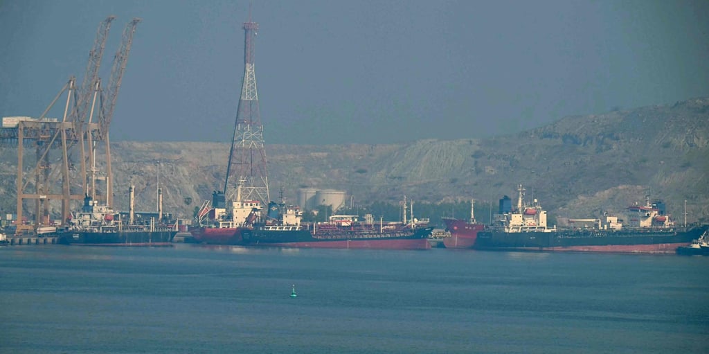 周一,霍尔费坎集装箱码头的油轮。这是中东唯一的天然深水港,也是沙迦酋长国的主要集装箱港口之一,位于霍尔木兹海峡沿岸,全球五分之一的石油产量通过这条水道。照片:法新社