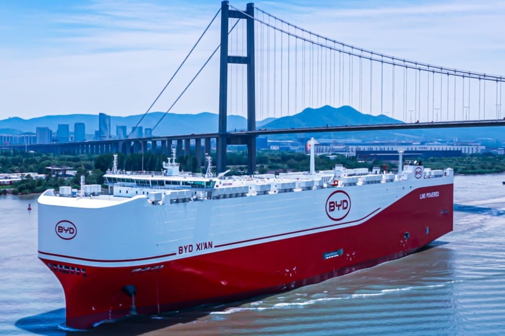 比亚迪表示,其六艘滚装船的总运力为45600辆汽车,另外两艘总运力为16200辆的船只预计将在未来几个月内交付。