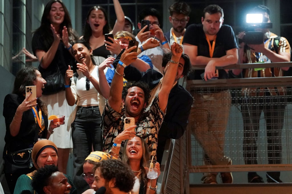 佐赫兰·马姆达尼初选之夜的观战派对上的支持者们。照片:路透社