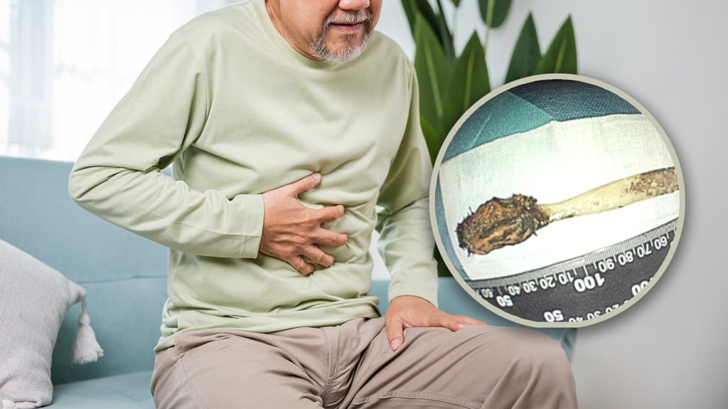 中国一名64岁男子在12岁时吞下一把牙刷,经过80分钟的手术终于将其从胃中取出。图片来源:南华早报合成图/Shutterstock/抖音
