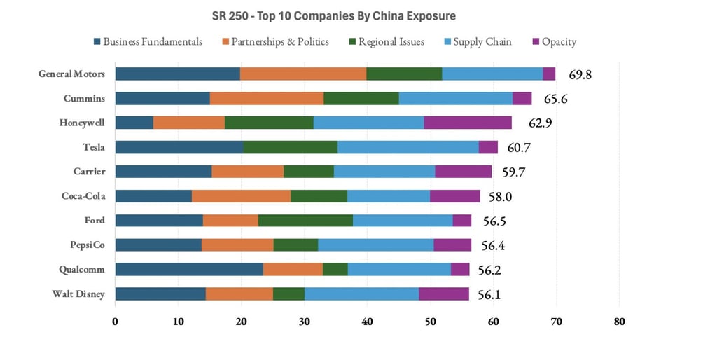 通用汽车,美国顶级汽车制造商之一,在对华业务敞口方面领先于美国企业,在中美贸易持续紧张的局势下处于微妙位置。美国总统唐纳德·特朗普对中国进口产品加征55%的高额关税,根据本周发布的一份研究报告。但通用并非孤例。埃隆·马斯克的电动汽车公司特斯拉、竞争对手汽车制造商福特、发动机制造商康明斯、航空航天与科技公司霍尼韦尔、饮料巨头可口可乐以及芯片制造商高通同样位列对华敞口前十名,显示出美国企业对中国市场的深度依赖。具有影响力的公司亚马逊、苹果、Meta和英伟达虽未进入前十,但仍属于因中国市场及其全球供应链中断而面临重大风险的科技巨头。这一结论源自市场研究公司Strategy Risks发布的最新年度指数报告,该报告评估了美国250家最大上市公司,以识别2025年在中美贸易摩擦中最脆弱的企业。