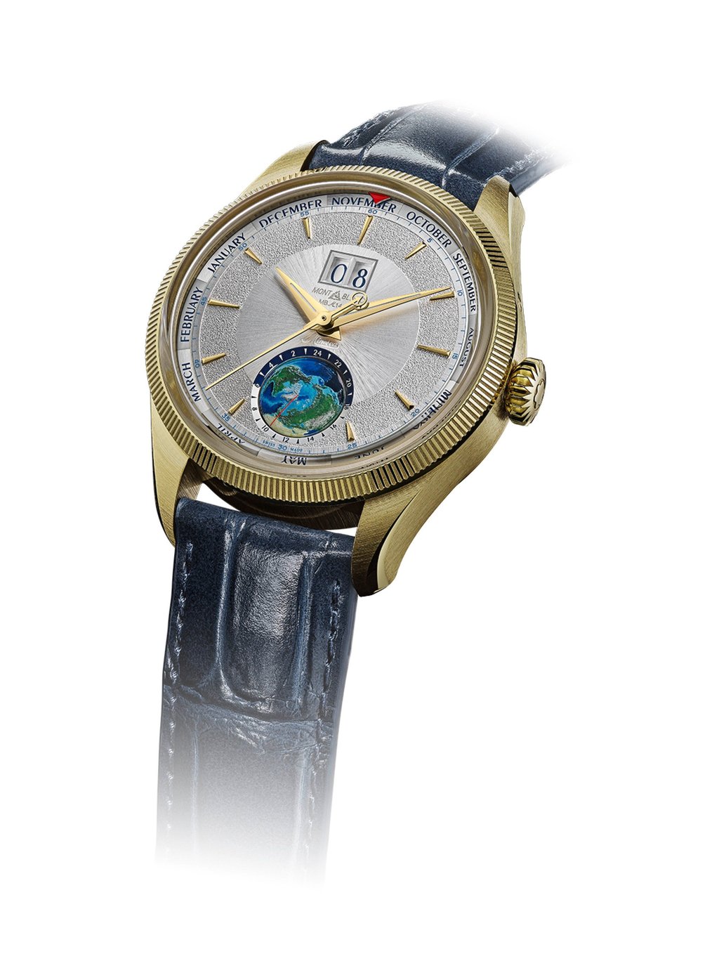 万宝龙1858系列地理大师年历腕表(青柠金款)。图片来源:资料图片