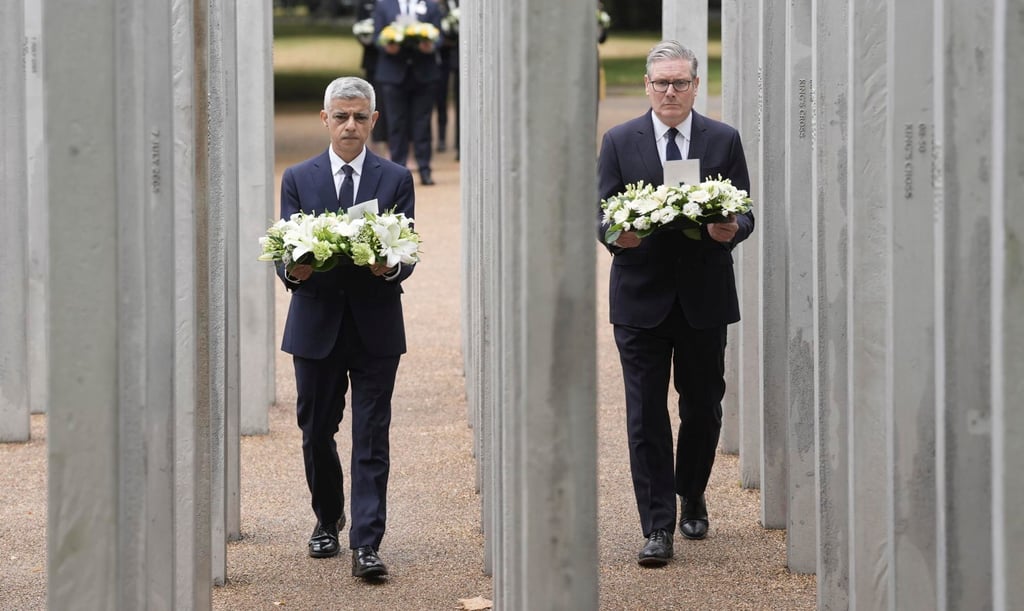 上午8时50分——二十年前第一枚炸弹爆炸的时刻,斯塔默与伦敦市长萨迪克·汗在海德公园纪念碑前敬献花圈。这座由52根钢柱组成的纪念碑纪念着所有遇难者。在爆炸发生地附近的地铁站,工作人员与通勤者集体默哀一分钟。
