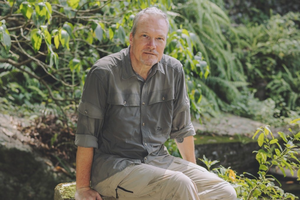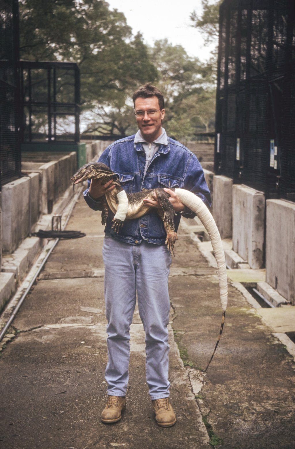 加里·阿德斯在香港嘉道理农场暨植物园救护中心手持一只爬行动物。照片:加里·阿德斯提供