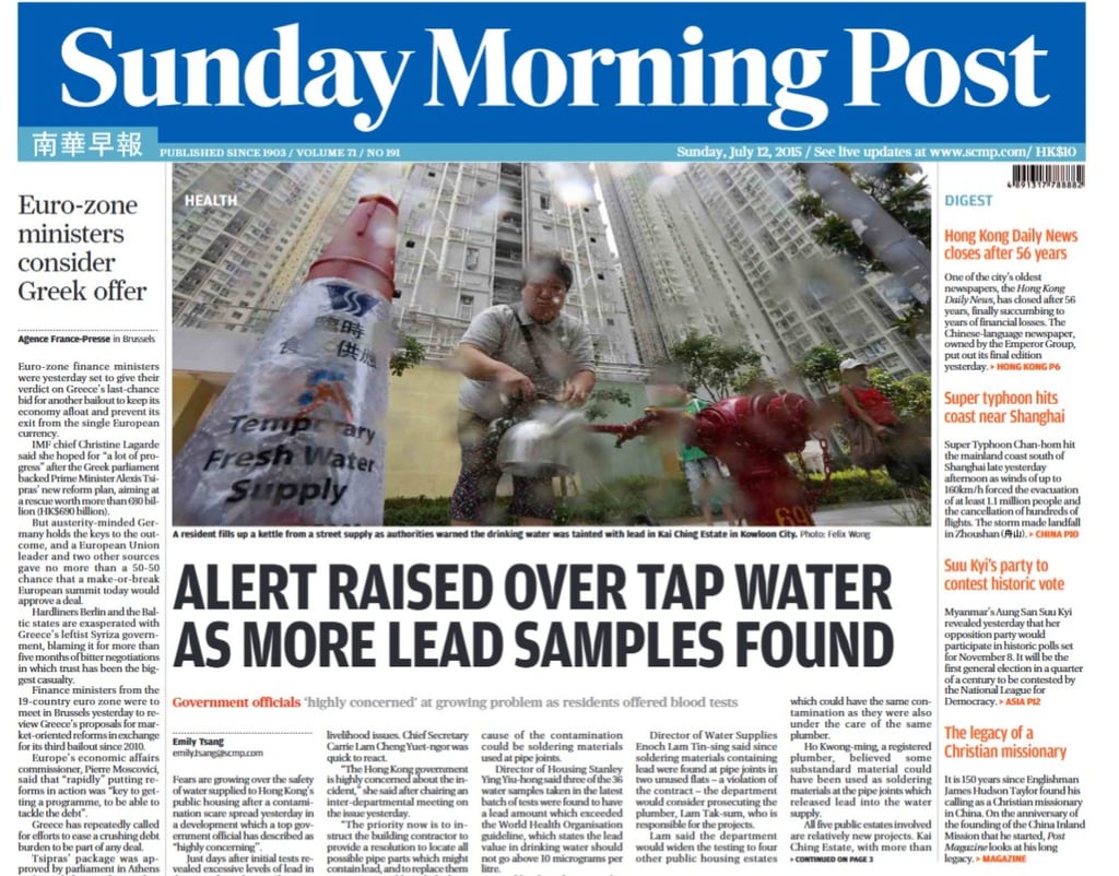 《南华早报》档案 | 历史上的今天:2015年香港公屋饮用水安全警报